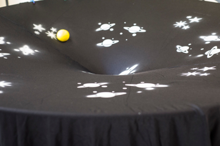 Ciò avviene anche ad UNIMORE. Infatti, il professor Diego Trancanelliche recentemente si è aggiunto al dipartimento FIM-UNIMORE dopo una fruttuosa carriera in USA e Brasileè un affermato ricercatore in teoria delle stringhe e dei campi e, in particolare, è un esperto di metodi olografici in cui diversi aspetti della fisica delle particelle sono relazionati alle caratteristiche di opportuni buchi neri in spazi curvi. A livello didattico inoltre, la relatività generale ed i buchi neri vengono spesso utilizzati da docenti del FIM anche in manifestazioni divulgative, poiché si prestano particolarmente bene a fornire una descrizione intuitiva dei fenomeni gravitazionali, come nel modellino mostrato nella figura allegata.